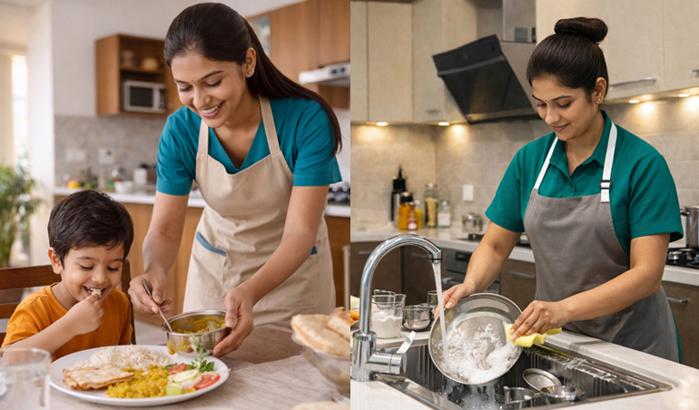 Assistance in preparing regular home-cooked meals for the family while maintaining kitchen hygiene and basic dietary requirements.